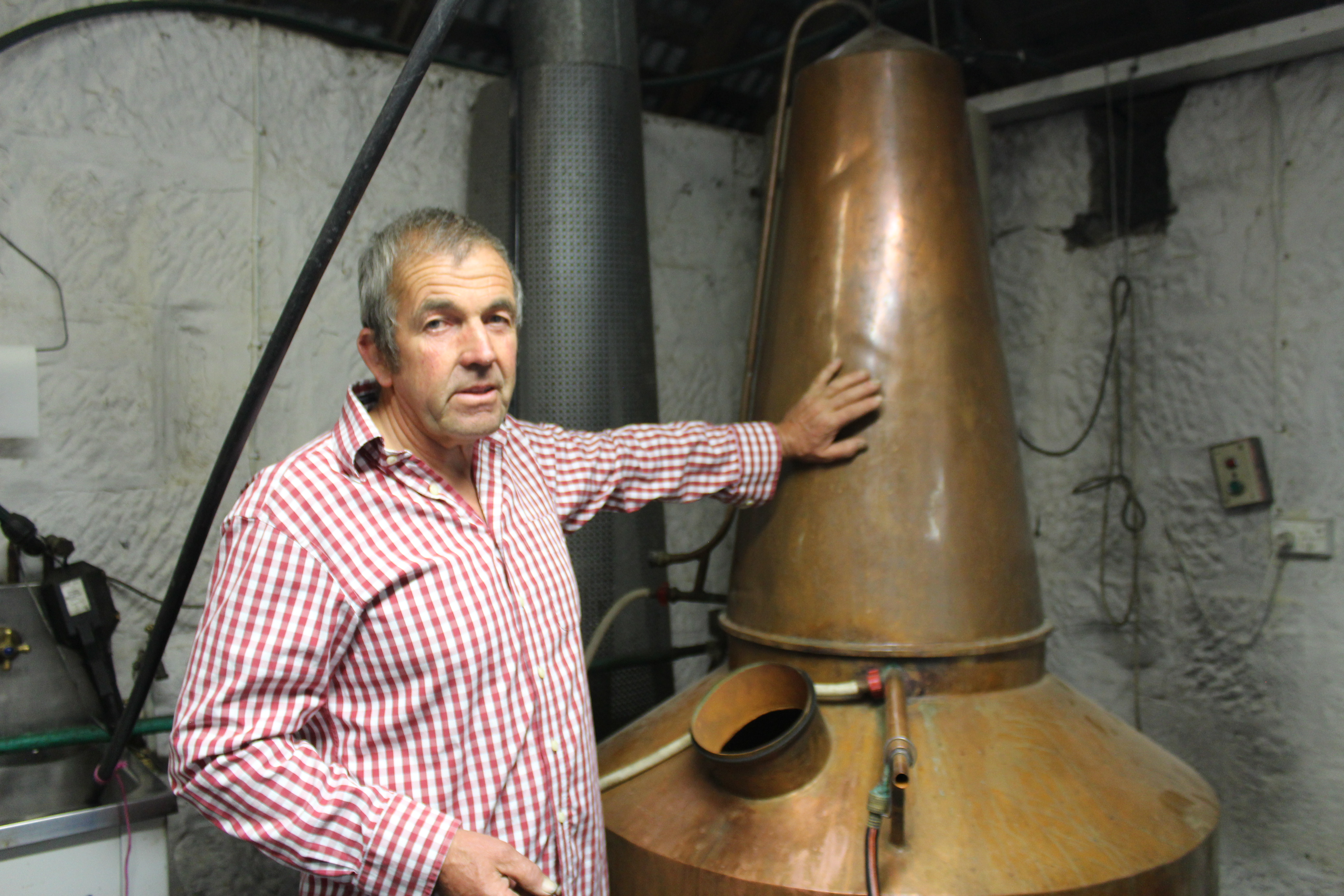 Since today is Earth Day, we thought it would be appropriate to include a shot of the man behind Tasmania’s Belgrove Distillery, Peter Bignell. Belgrove, best known for its rye, is what Bignell calls not a carbon-neutral distillery, but a carbon-negative one. Bignell fuels the completely grain-to-grass operation with biodiesel derived from used cooking oil. In the top photo, Bignell shows off his home-made still, which the biodiesel powers. Below is a look at the idyllic farm on which the distillery is situated. The fields produce the grain for Belgrove’s spirits.